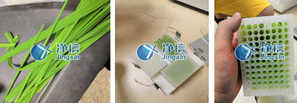 袁隆平農業高科技股份有限公司生物技術中心在這塊也是相當重視,在研究轉基因食物這塊也投入相當大的精力。在研磨水稻葉片檢測是否轉基因這塊就用了上海凈信超高通量組織研磨儀(JXFSTPRP-576)。